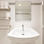 Moderne detaljer indeholder tv, et opholdsområde og separat toilet.